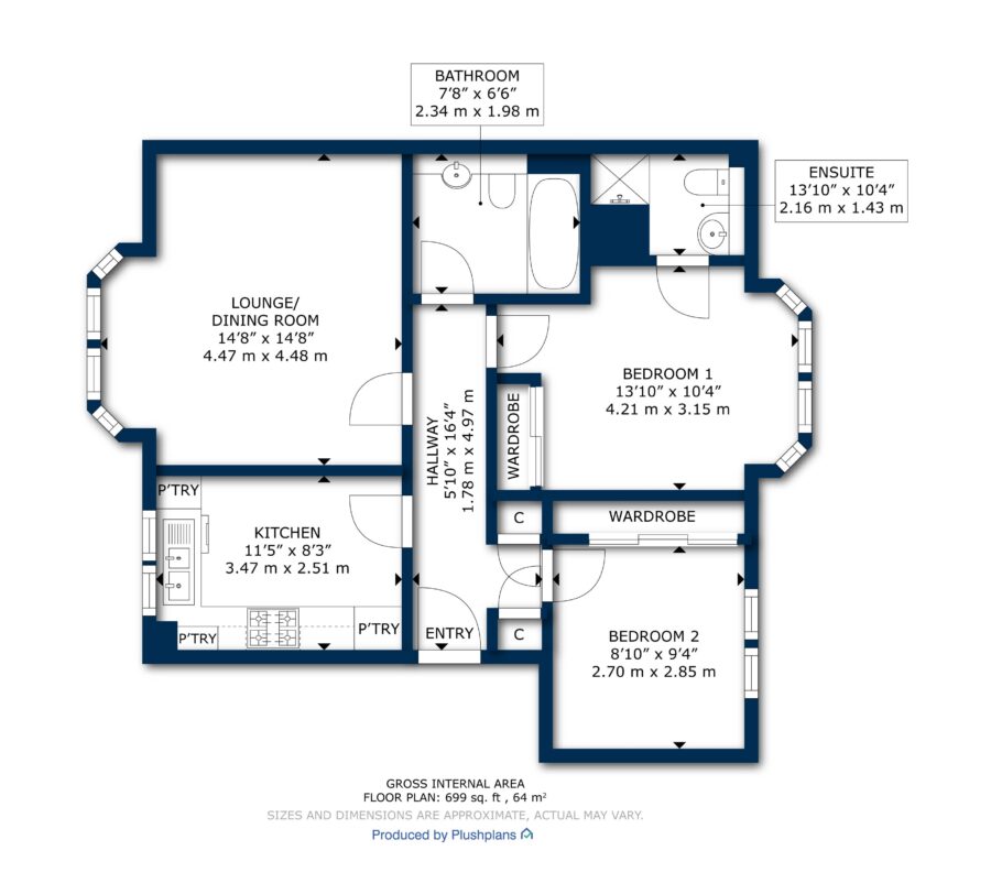 The neatly presented accommodation comprises, reception hall, spacious bay windowed lounge/dining enjoying attractive views, separate breakfasting style kitchen with integrated appliances, 2 bedrooms ( the main bedroom - No 1 ) featuring an en-suite whilst the main bathroom is situated off the reception hall.