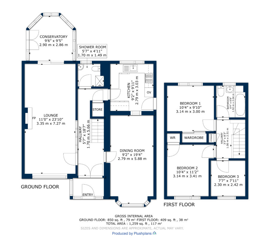 The well proportioned accommodation comprises on ground floor, entrance vestibule onto the reception hall, spacious lounge extending to over 23’ (formerly a lounge/dining room), separate dining room (formerly the garage – this room could be a 4th bedroom or additional living room if required), separate kitchen & conservatory whilst a useful “downstairs shower room/wc is located off the reception hall. On upper level, 3 bedrooms (2 double & a single) together with the main bathroom.
