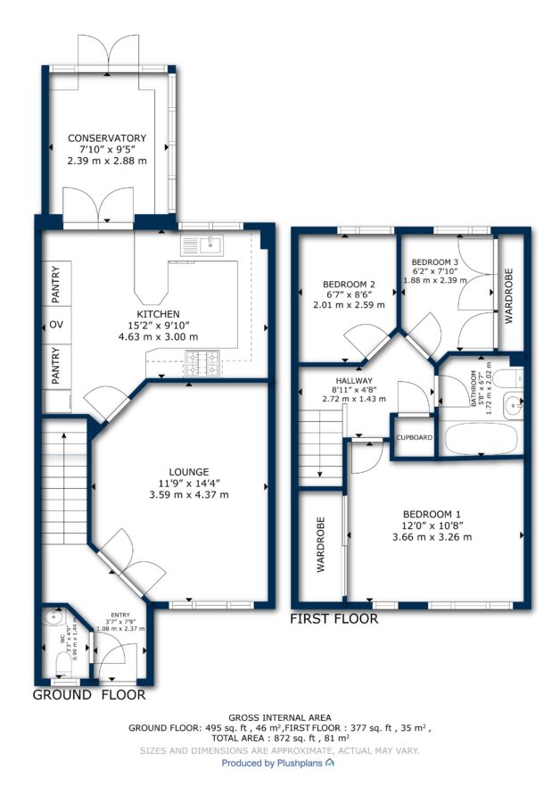 The attractively presented accommodation comprises, on the ground floor, reception hall with useful modern “downstairs wc” off, spacious lounge to the front, whilst a stylish/dining kitchen with integrated appliances is located to the rear – doors from here onto the charming garden room. On the upper level, 3 bedrooms and main bathroom.