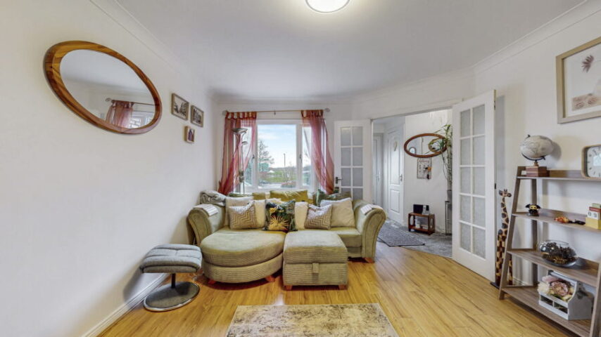 The specification includes both gas central heating and double glazing. EPC – C. Attic storage is available. Easily maintained gardens are provided to the front & rear with the rear incorporating a paved patio/outdoor area plus useful timber harden shed. Residents parking facilities are incorporated within the landscaped development.