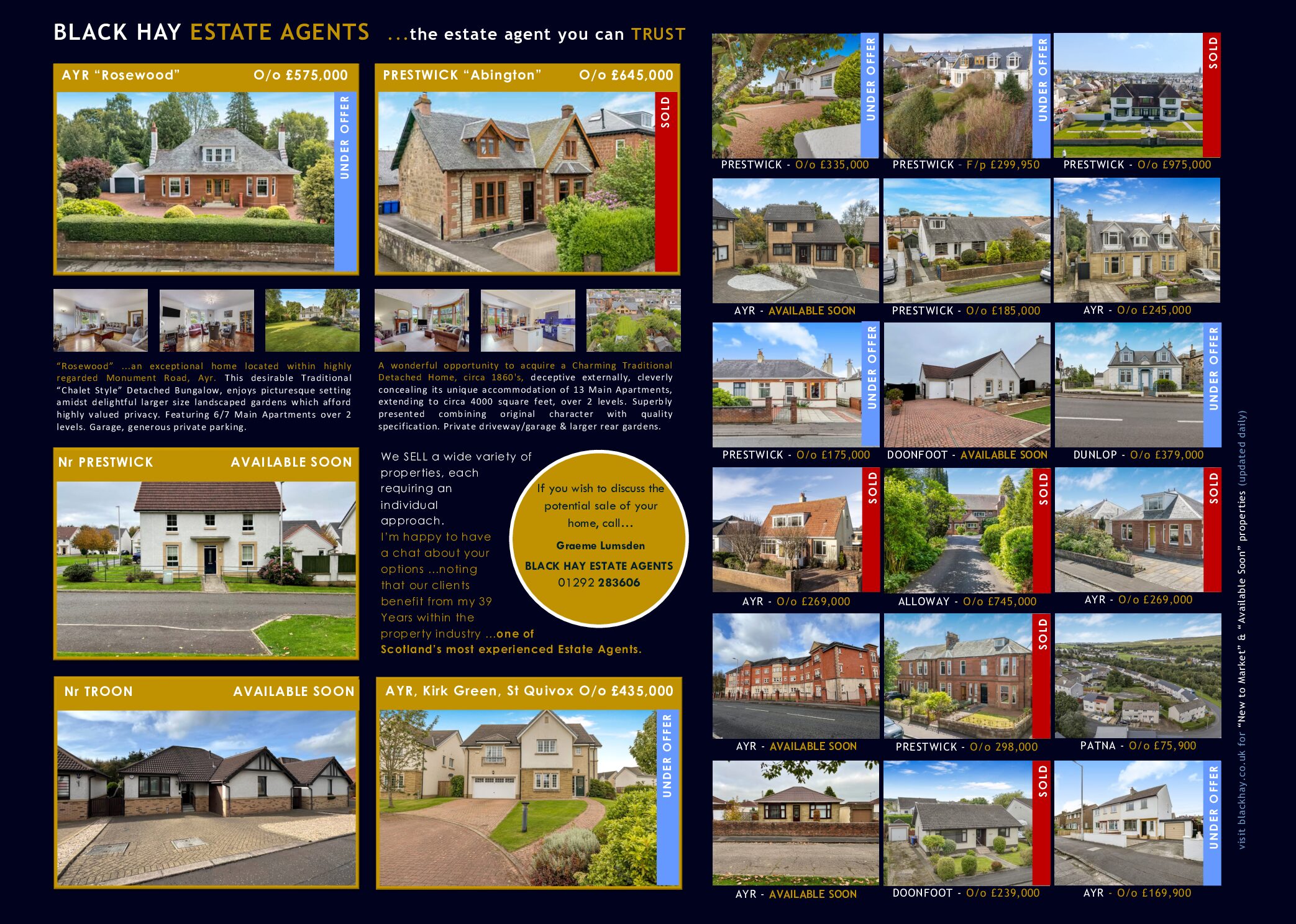 To arrange a Viewing Appointment please telephone BLACK HAY Estate Agents direct on 01292 283606.