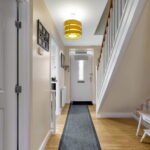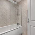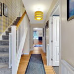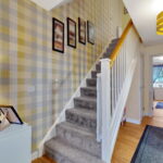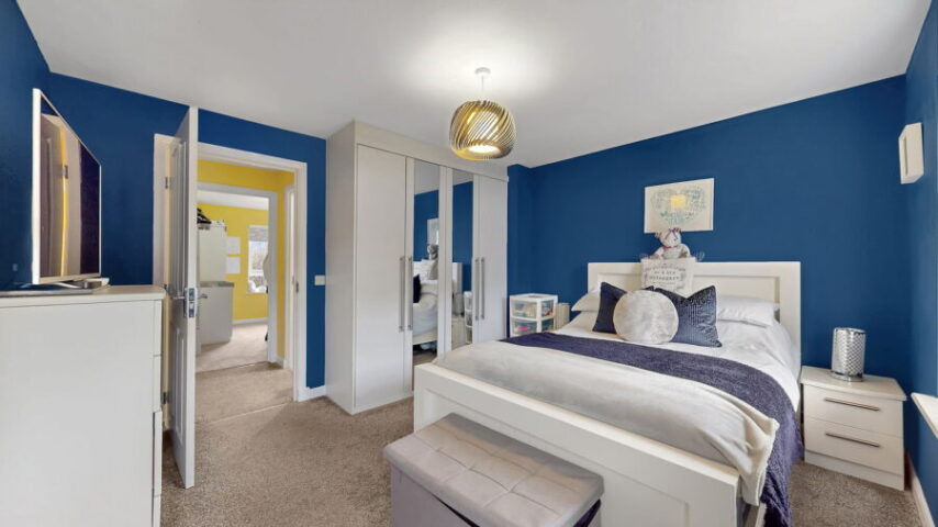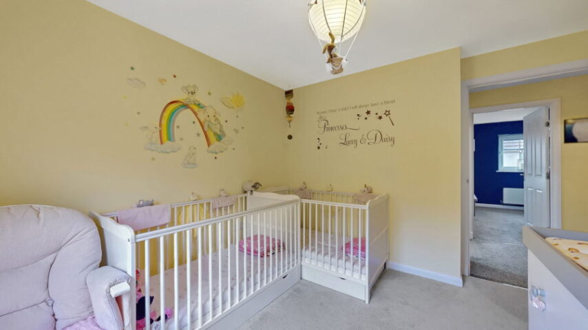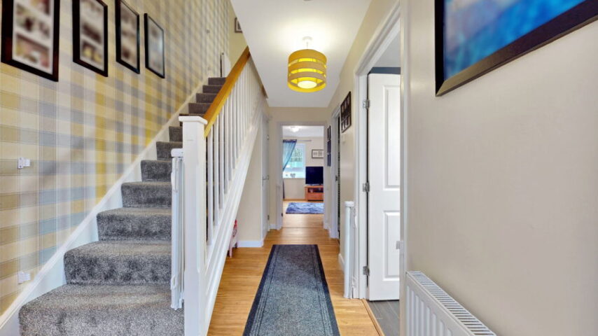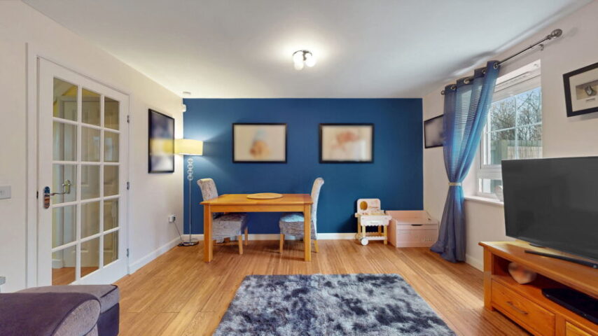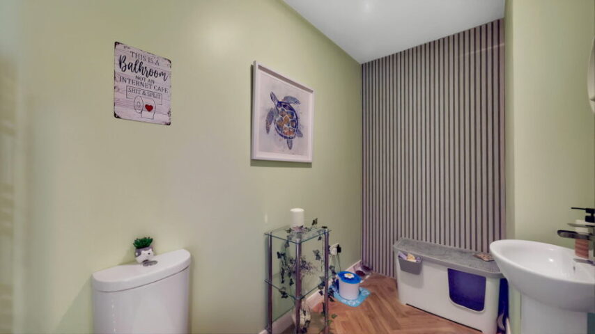 Internal viewing reveals a very comfortable and stylish home, comprising on ground floor, reception hall with useful “downstairs” wc off, rear facing lounge/dining which enjoys views over the garden & tree-lined woodland area beyond the boundary fence – patio door from this room opens onto the garden/decking. On the upper level, 3 bedrooms – the “main bedroom” No 1 to the front being of larger size with good storage facilities whilst a further double & good sized single bedroom (Nos 2 & 3) are located to the rear, the main bathroom is off the upper hallway.