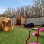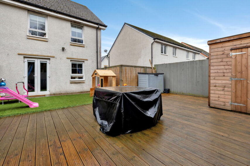 The specification includes both gas central heating & double glazing. EPC – C. Attic storage is available. A private monobloc driveway provides off-street parking. Neatly presented gardens are featured, stone chipped to the front whilst the rear is artificial grass & broad timber decked patio area plus garden shed.