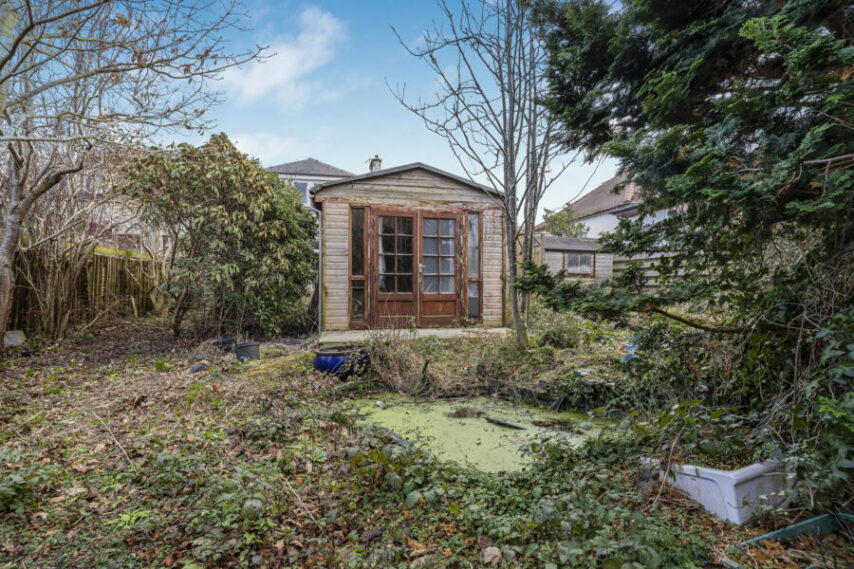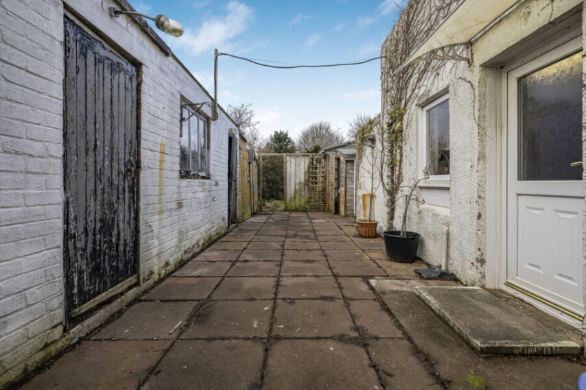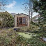 The specification includes both gas central heating and double glazing. EPC – D. The property is set amidst mature gardens – the rear formerly a most appealing area in which to relax/potter, featuring “specimen” trees however this area will now require attention. A valued private driveway & garage provide off-street parking whilst on-street parking is available nearby. Outhouse storage (requiring attention) sits within a small courtyard just outside the kitchen area (also accessed via door from the driveway).